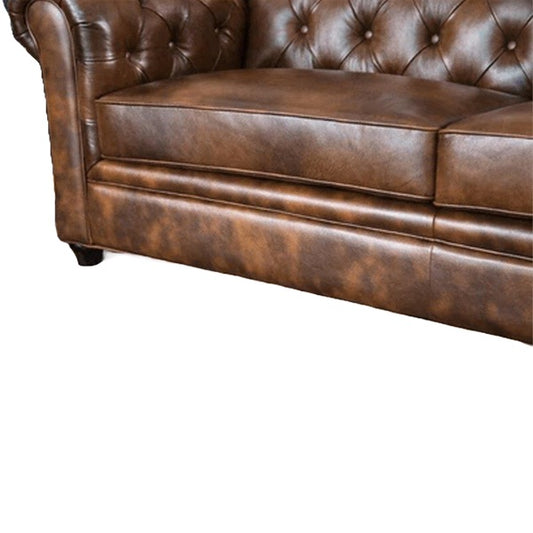 Hunky Chesterfield leatherette Rolled Arm Sofa Set with Pine Wood Legs