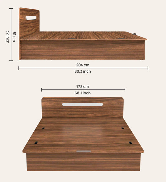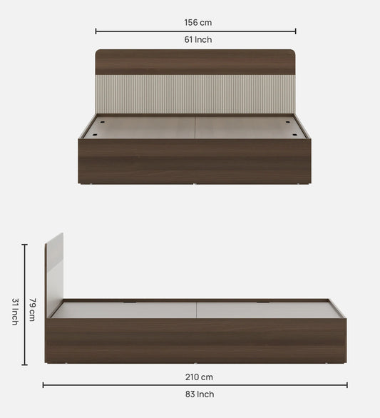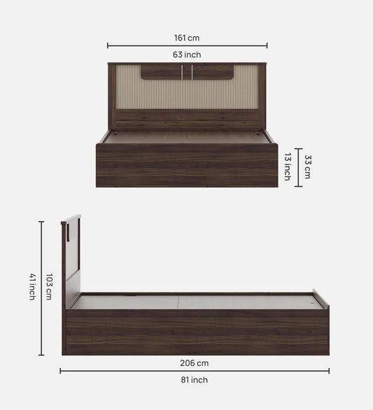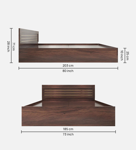 Hunky Jipssy King Size Bed with Box Storage in Walnut Melamine Finish