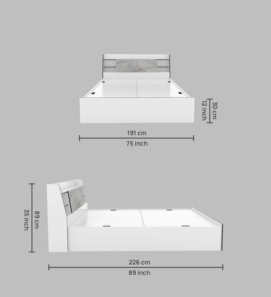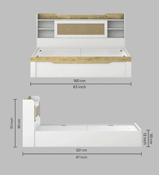 Jiipsy Queen Size Bed in Kingston White & Sebastian Oa Finish with Box Storage