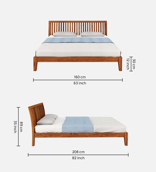 Hunky Sheesham Wood Queen Size Bed In Scratch Resistant Provincial Teak Finish