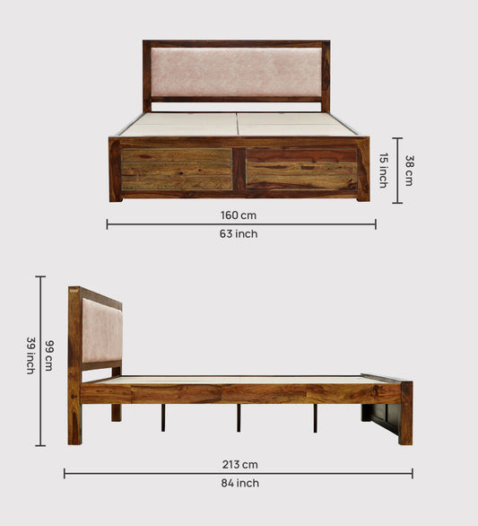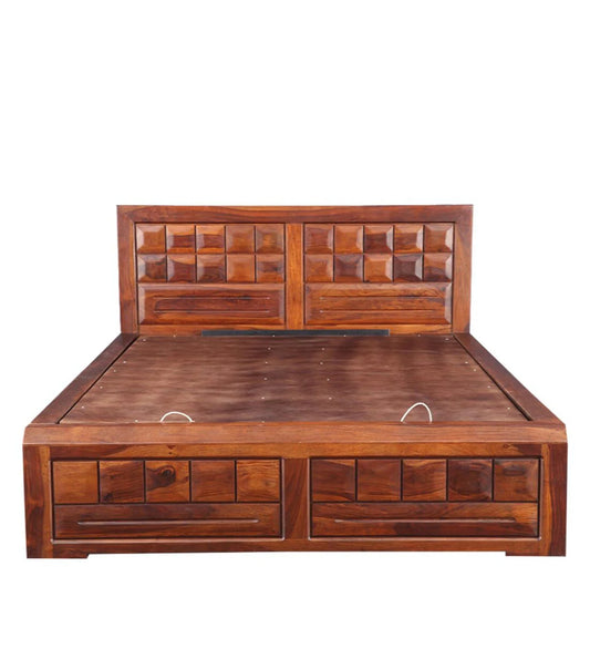 Hunky Queen Bed In Sheesham Finish With Box Storage