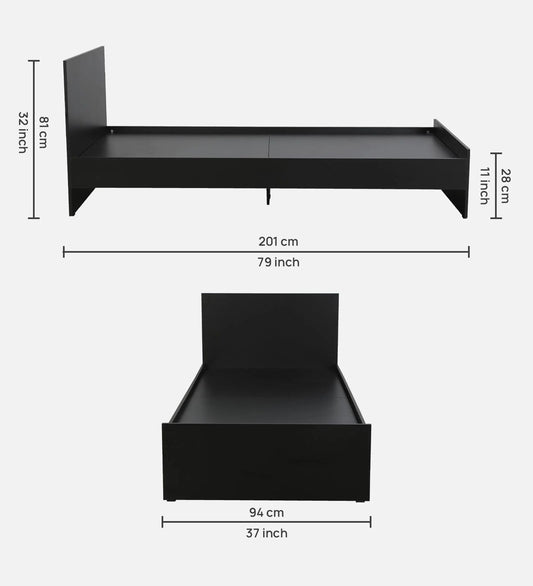 Hunky Single Bed in Rigato Walnut Finish with Box Storage