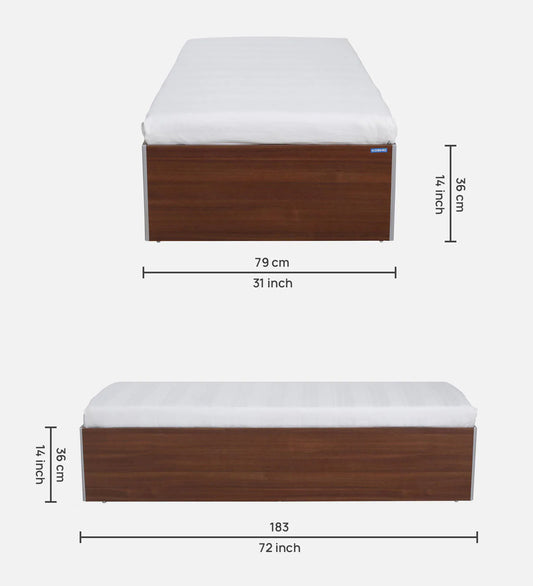 Single Size Bed in Columbian Walnut Finish with Box Storage