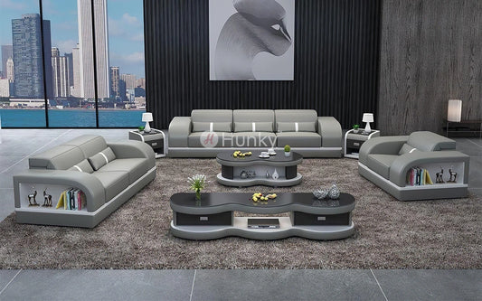 Hunky Dual Tone Leather Modern Smart Sofa Set with Storage and Ambient Led Lights