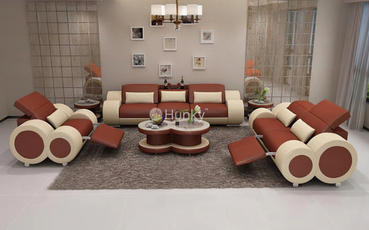 Hunky Leather Modern Smart Sofa Set With Manual Recliner