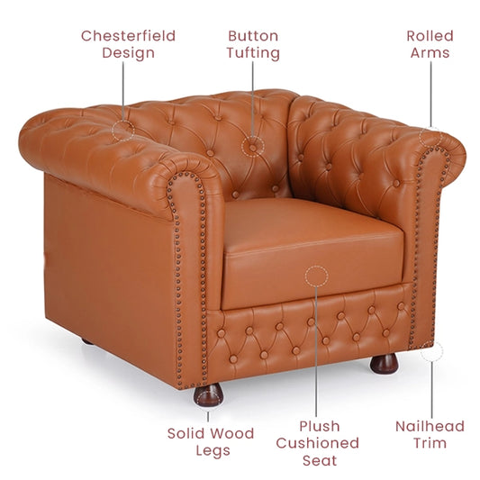 Hunky Modern Stylish 1 Seater Leatherette Sofa Set with Wooden Frame and Legs