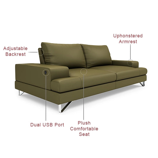 Hunky leatherette 3 Seater Sofa Set with Wooden Frame, Stainless Steel Legs and 2 USB Ports
