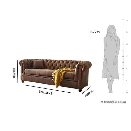 Hunky Chesterfield leatherette Rolled Arm Sofa Set with Pine Wood Legs