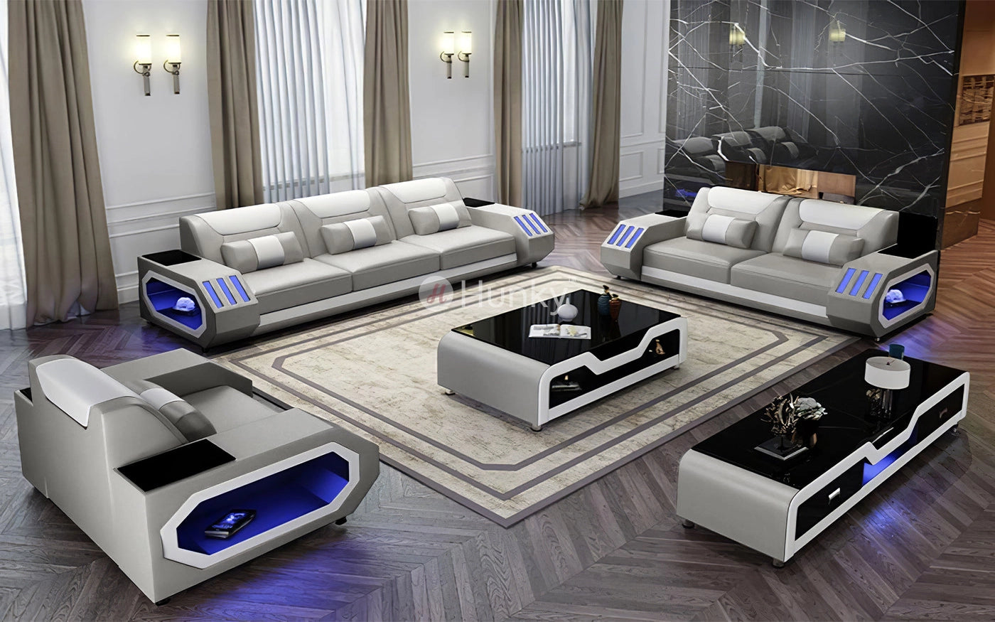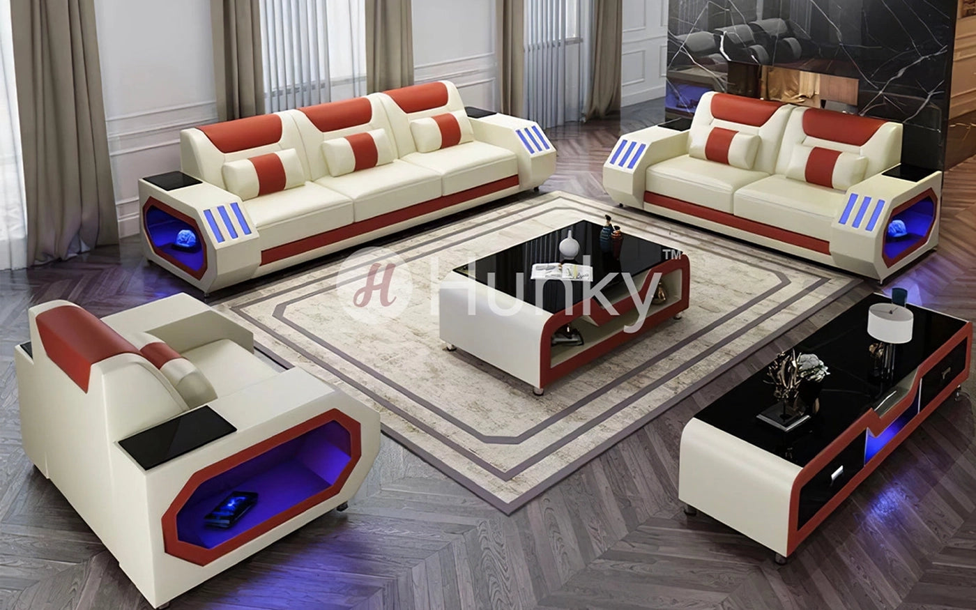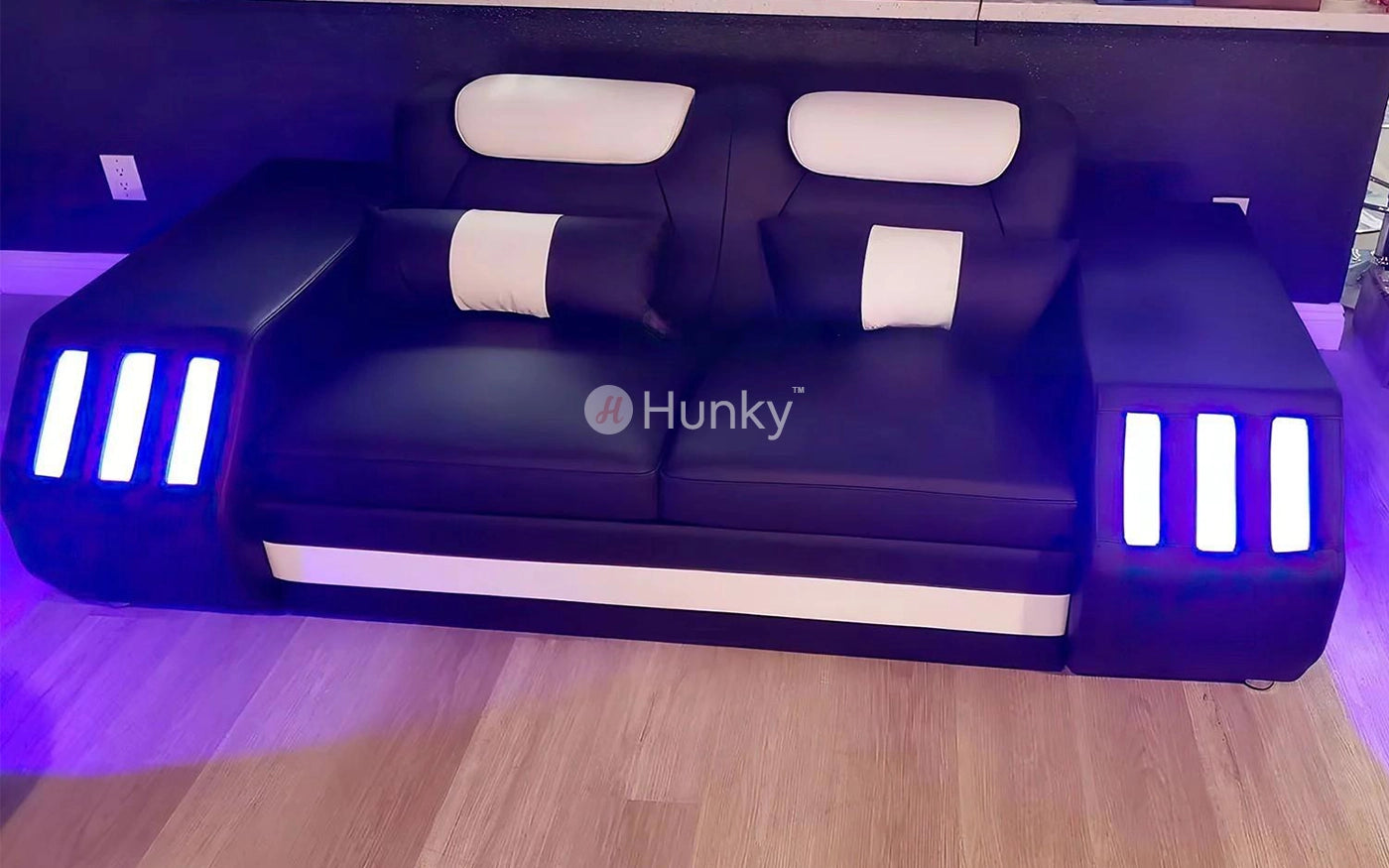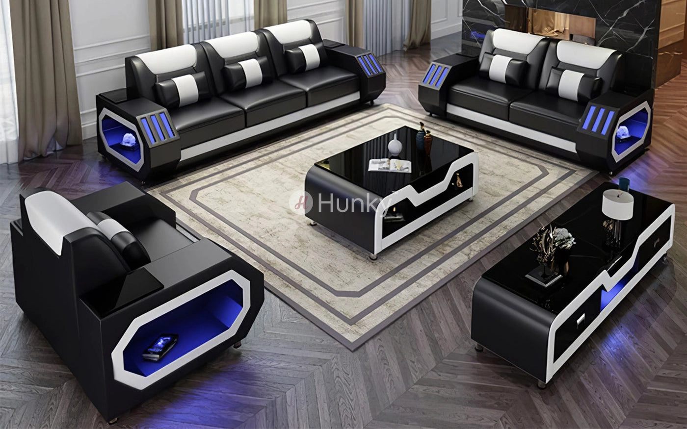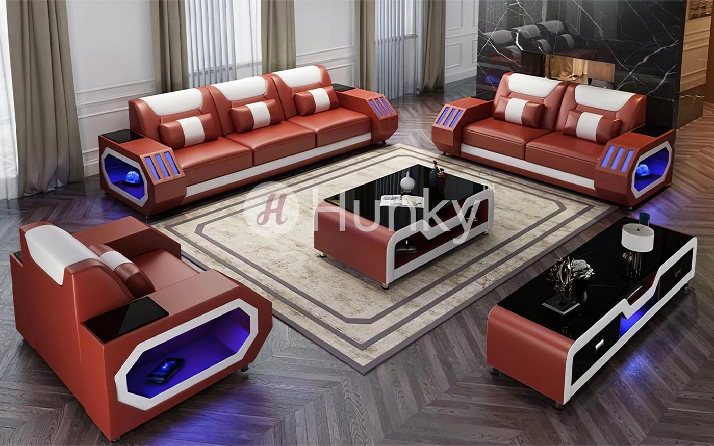 Hunky Modern Leather Dual Tone Smart Sofa Set with Cup Holder and Multi-Color Ambient light