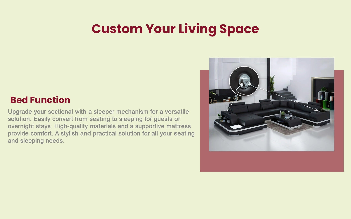 Designed with your preferences in mind, the Smart LED Sofa Set allows you to personalize your space effortlessly. Choose between bonded leather or top grain Italian leather upholstery in a variety of colors to match your style and taste. Whether you're entertaining guests or relaxing with family, this smart home sofa caters to every need.