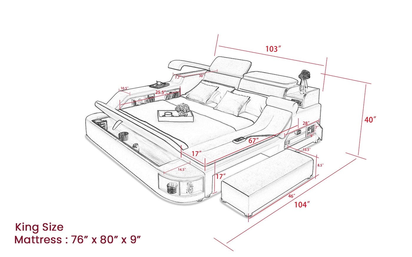 Experience unparalleled versatility with this queen-size smart bed, equipped with a range of features to cater to your needs. Utilize the side storage with built-in shelves, providing ample space to store books, magazines, and other essentials, keeping your bedroom tidy and organized.